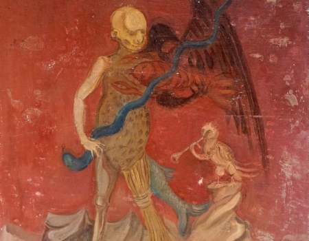 Și a trâmbițat întâiul înger, și s‑au pornit grindină și foc amestecat cu sânge și au căzut pe pământ. Și a ars din pământ a treia parte, și a ars din copaci a treia parte, iar iarba verde a ars de tot.