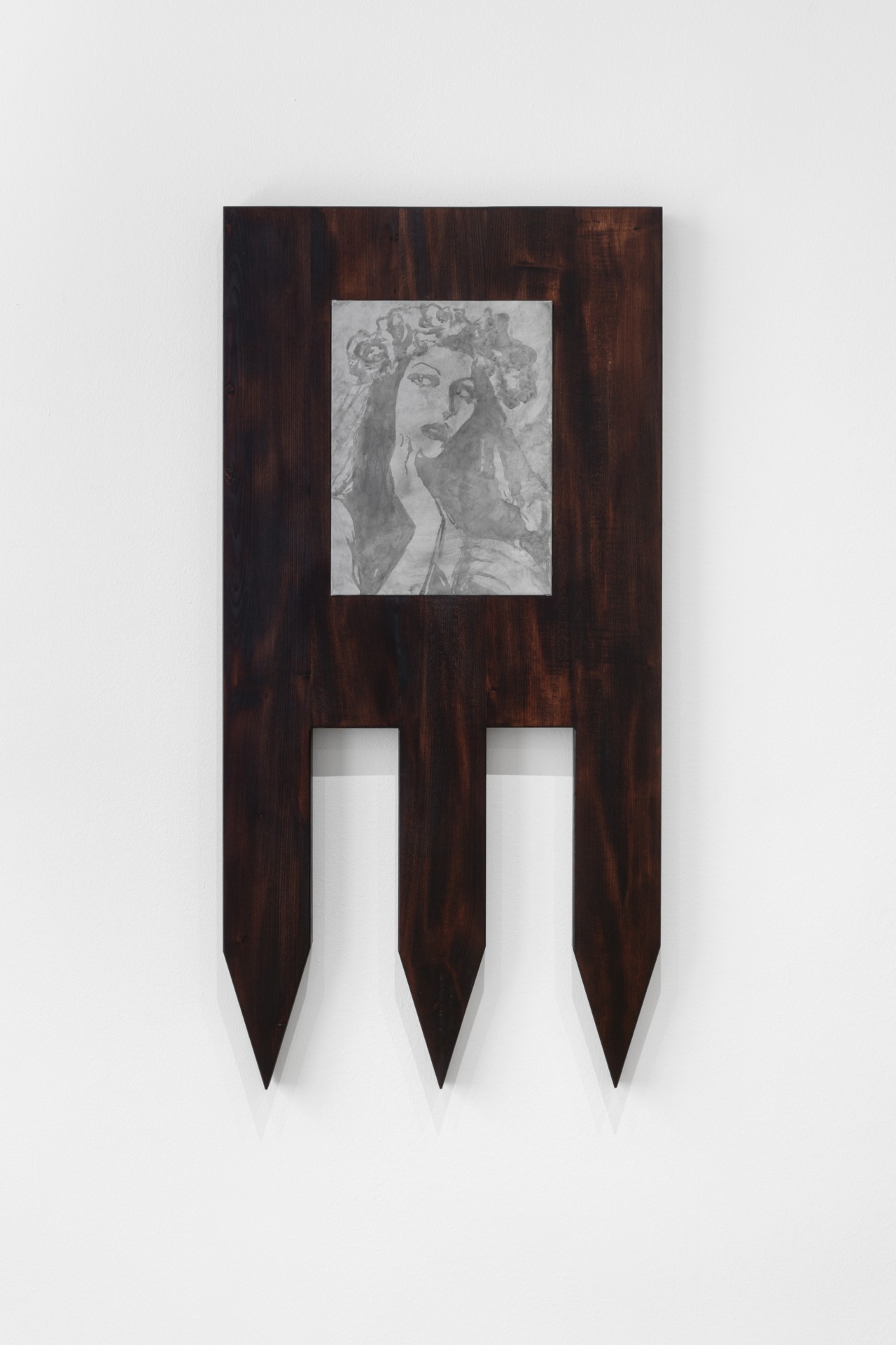Lucrările din ELEGIA sunt montate în rame și pe piedestaluri din lemn maro închis, evocând o răceală burgheză: un spațiu al impenetrabilității și sexualității ancorat în sfera privată. Acest material încadrează imagini și obiecte controversate, generând tensiuni între răceală & expunere, putere & eliberare, sacru & profan, static & dinamic.